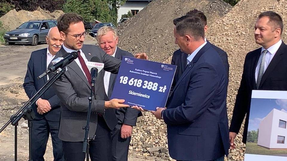 Minister Rozwoju i Technologii Waldemar Buda przekazał władzom Skierniewic dotację w wysokości ponad 18,6 mln zł. Dzięki środkom powstanie 148 mieszkań w dobrym standardzie i o niskim czynszu dla najbardziej potrzebujących mieszkańców miasta.