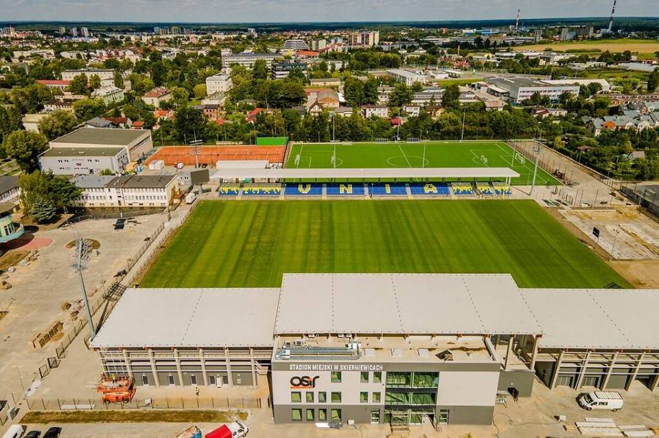 Piłkarskie marzenie skierniewiczan już niedługo się spełni. Budowa stadionu wraz z nowoczesną bazą treningową, jedną z najnowocześniejszych w kraju wchodzi w ostatnią fazę realizacji.