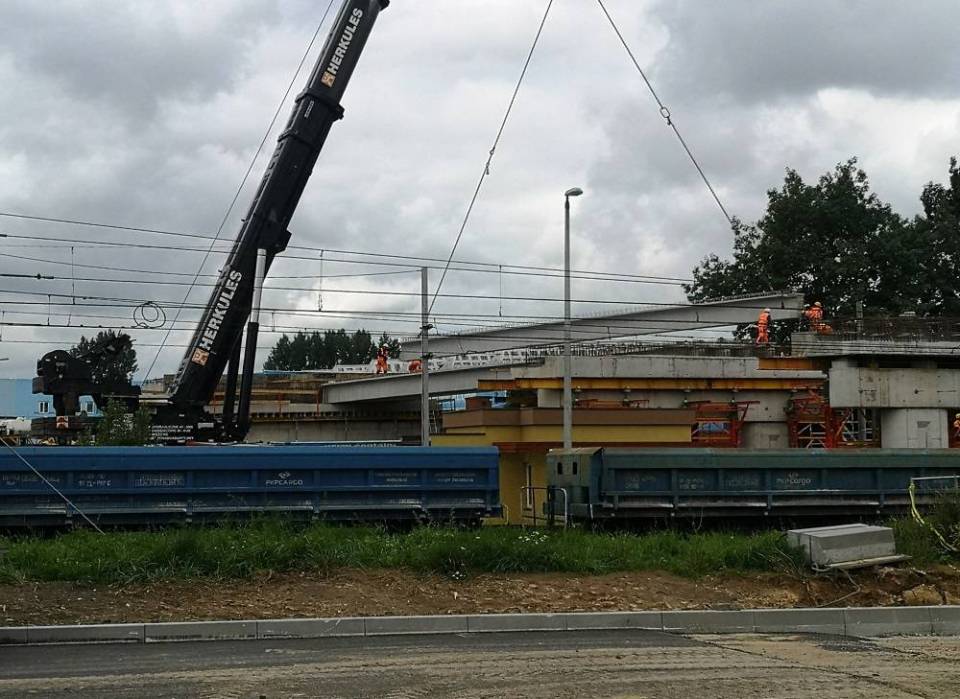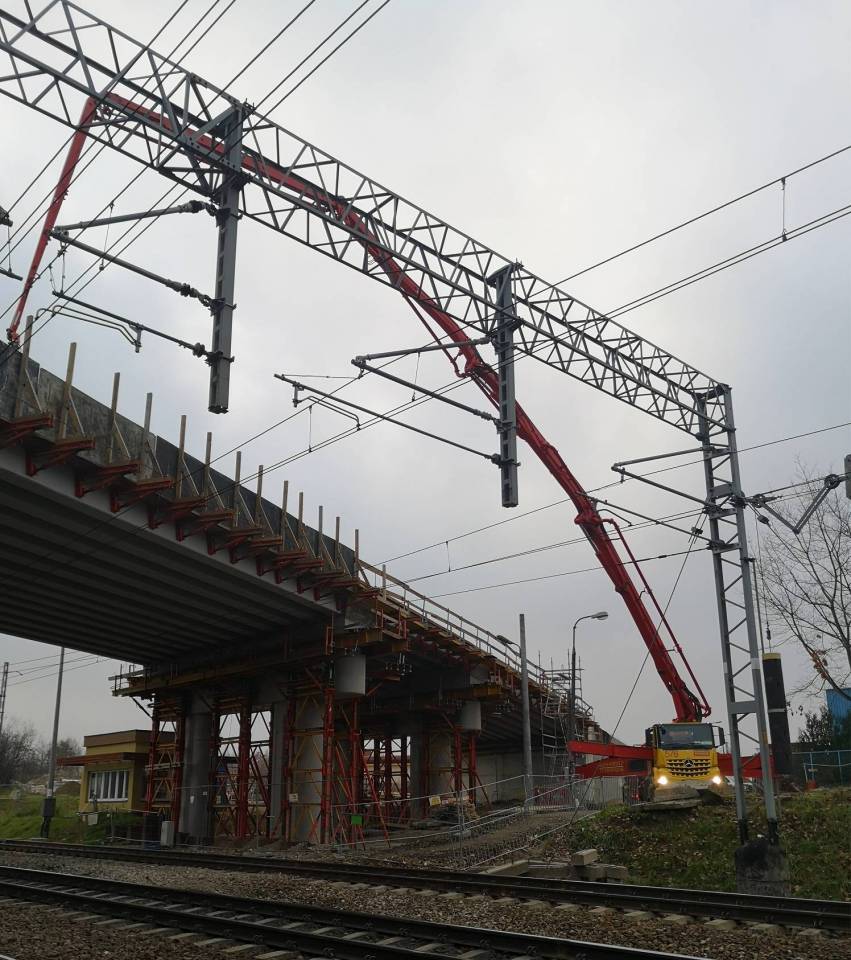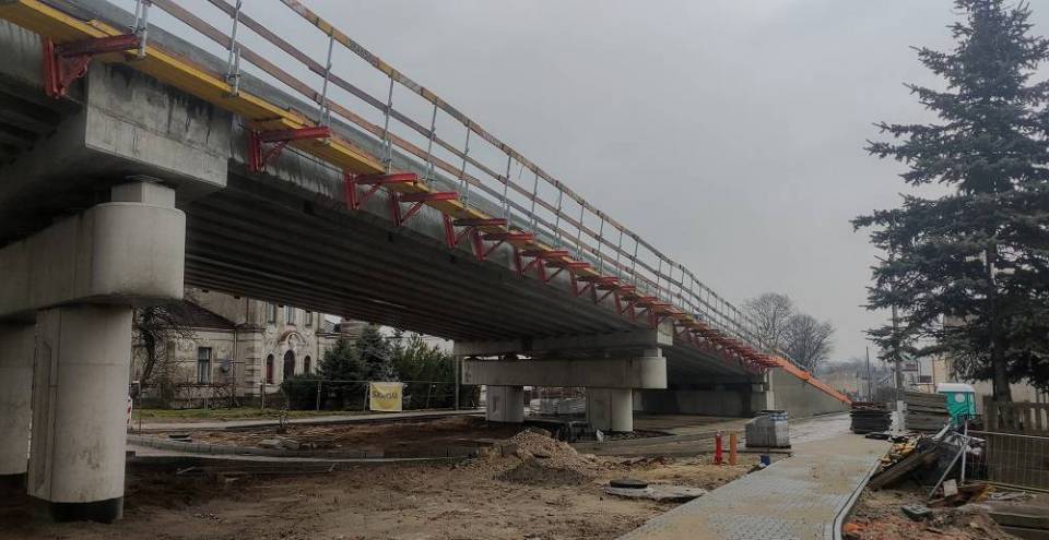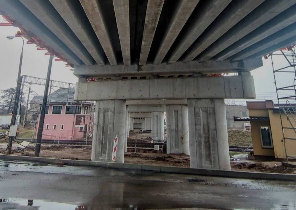 Są już gotowe dwa nasypy, na których będą dojazdy do wiaduktu. Wykonano też przebudowę instalacji m.in. wodociągowych, gazowych, energetycznych. Postępuje montaż ekranów akustycznych oraz budową nawierzchni dróg. Prace nie wpływają na ruch pociągów.