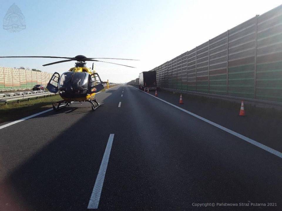 Do bardzo poważnego wypadku doszło na autostradzie A2 w powiecie skierniewickim. Na miejscu lądował śmigłowiec Lotniczego Pogotowia Ratunkowego.