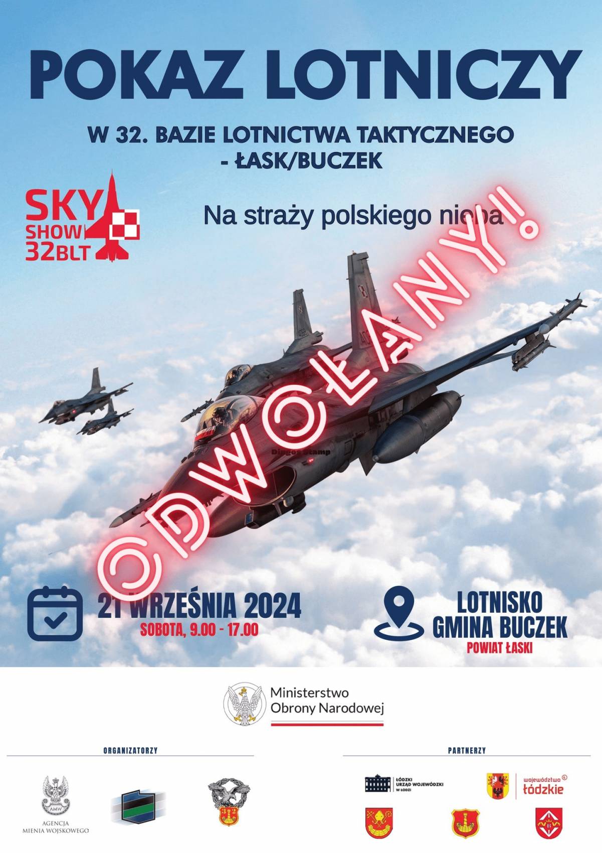 Sky Show na terenie 32 Bazy Lotniczej był planowany za nieco ponad dwa tygodnie. Impreza miała się odbyć w sobotę, 21 września. Decyzję o odwołaniu impezy podjęto 5 września.