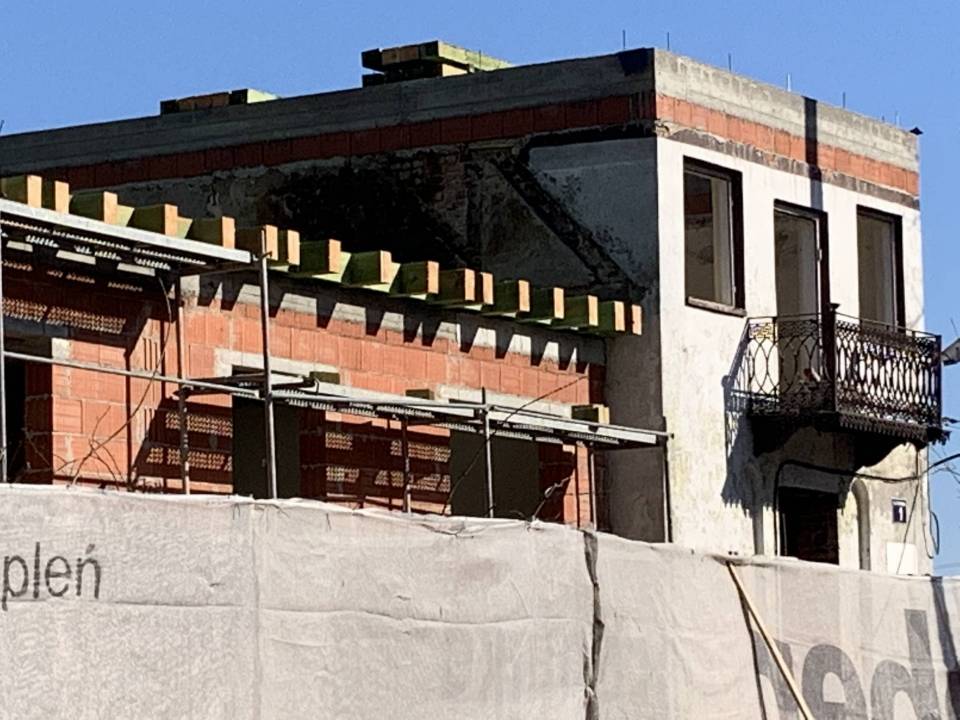 - Jest to budynek wpisany w gminną ewidencję zabytków, natomiast cieszy nas bardzo fakt, że udowodniliśmy m.in. Łódzkiemu Konserwatorowi Zabytków, ale też organowi wydającemu pozwolenie na budowę, że ta część parterowa powinna zostać wybudowana od nowa, ponieważ te mury były bardzo spękane. (...) Projekt zarekomendował, żeby jednak tę część pobudować od nowa, oczywiście w takim stylu, jak to było przedtem. Natomiast ta druga część, piętrowa, gdzie kilkanaście lat temu mieści się posterunek energetyczny została zachowana, ponieważ tam są zdrowe ściany, suche mury, nie ma samych spękań, dlatego tę cześć zostawiliśmy w takiej formie, jaka jest - mówił w lutym na antenie Radia RSC, Burmistrz Jeżowa Mariusz Guzicki.