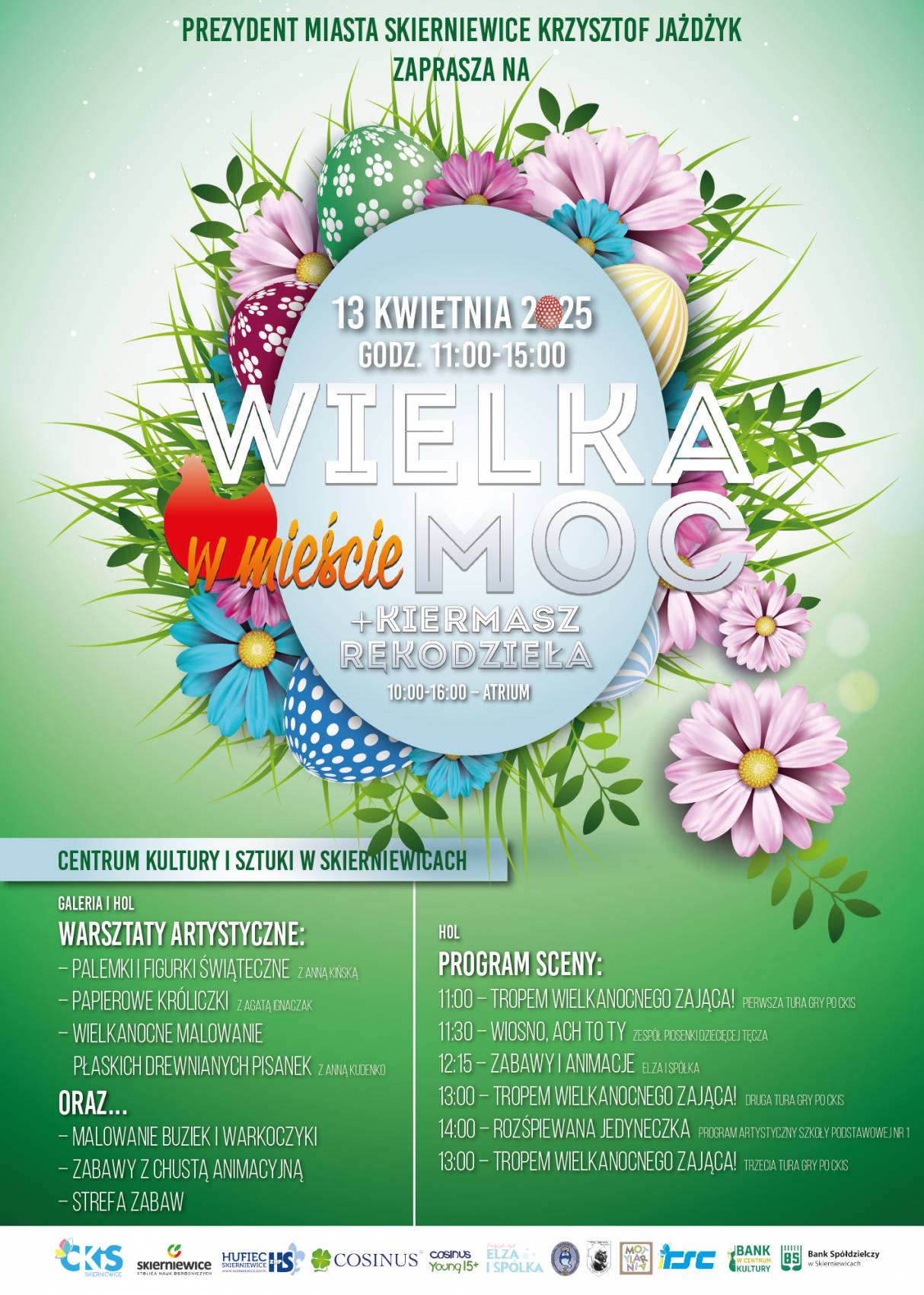 Już w niedzielę, 13 kwietnia, zapraszamy wszystkie dzieci i ich rodziny na wyjątkowe wydarzenie – WielkaMoc w Mieście. Przestrzenie CKiS w Skierniewicach wypełnią się zabawą, muzyką i warsztatami! Nie zabraknie też tradycyjnego kiermaszu.
