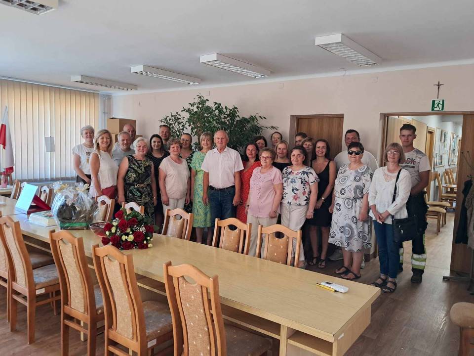 Pracownicy Urzędu Gminy i podległych jednostek złożyli serdeczne gratulacje i życzenia. Krótkie spotkanie było idealnym momentem na wspomnienie początków kariery w samorządzie oraz podsumowanie działań podjętych na rzecz gminy.