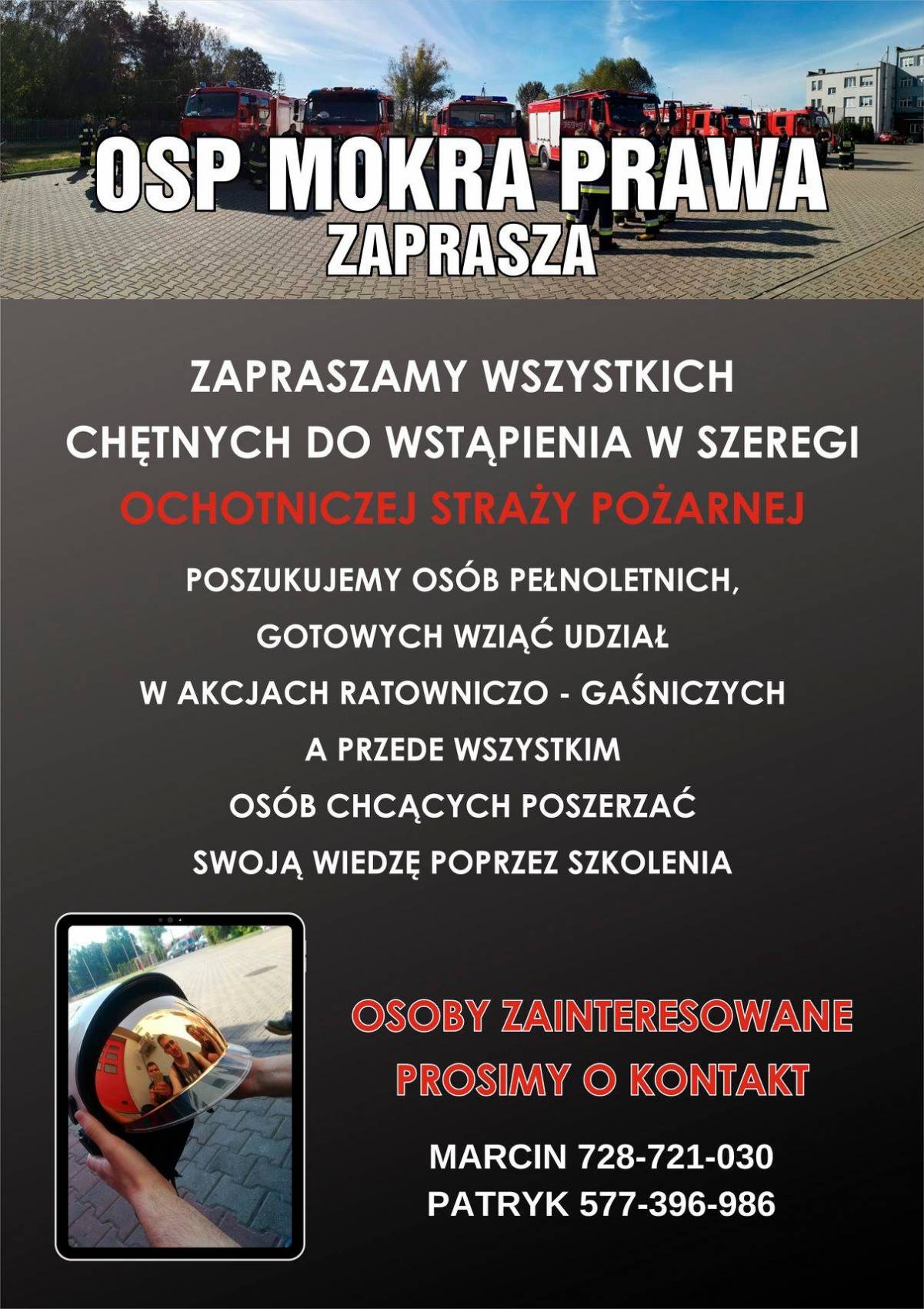 OSP Mokra Prawa zaprasza wszystkich chętnych do wstąpienia w szeregi Ochotniczej Straży Pożarnej.