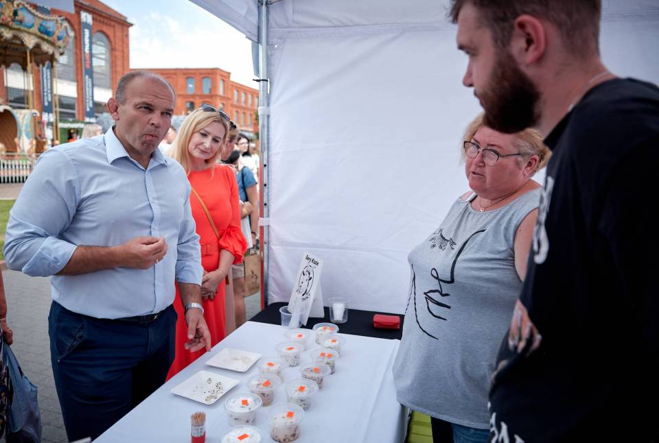 Wśród wystawców było wiele KGW oraz producentów regionalnej, tradycyjnej żywności. Ich stoiska kusiły pierogami z różnorodnym farszem, żurkiem na prawdziwym zakwasie, rzemieślniczymi serami czy domowymi przetworami. Smaki i aromaty przyciągały gości jarmarku a produkty oraz potrawy błyskawicznie znikały. - Wystawialiśmy się dzisiaj ze świeżonką, bigosem i pierogami z mięsem i kapustą, mamy też duży wybór ciast. Jest bardzo duże zainteresowanie, bardzo dużo chętnych, świeżonka już się skończyła – przyznał ok. godz. 16 Norbert Dudek z KGW Pod Lipami z Koła w pow. piotrkowskim. Gospodynie z KGW Chorki z pow. łęczyckiego do Łodzi przyjechały z prażokami, karkówką w sosie i żurkiem chorkowskim. Jak zdradziła Dorota Suchocz z koła, zupa jest robiona według bardzo starego przepisu przekazywanego z pokolenia na pokolenie. – Podstawą jest zakwas chorkowski z mąki żytniej z dodatkiem skórki chleba, kisi się go 7 dni – mówi.